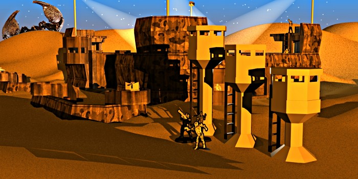 The box has a removable roof and its height can be reduced to fit the real eye height of your miniatures, while the tower height can be resized using one of the three different pillars available: 2", 3" and 4" long.